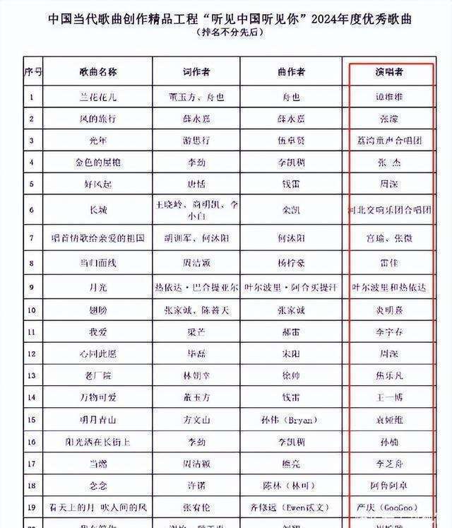 今年3月13日,中国音乐家协会公布了一份24年年度音乐20强的榜单。在这个榜单里,有许多深受大众喜爱的歌手入选,张杰、周深、谭维维等都在其中。令人颇感意外的是,人气很高的刀郎却不在名单内,这一结果在网络上引起了轩然大波。